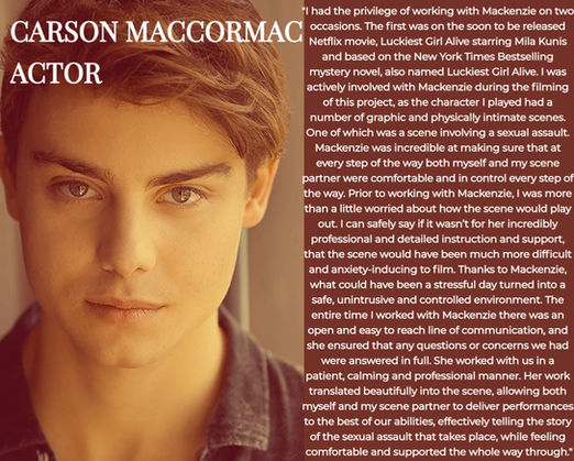 Mackenzie is a certified Intimacy Coordinator at Intimacy Coordinators Canada and
